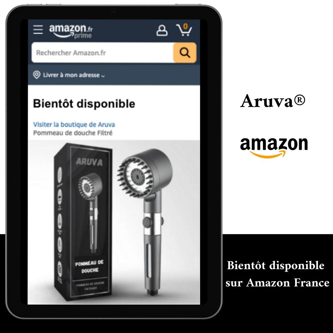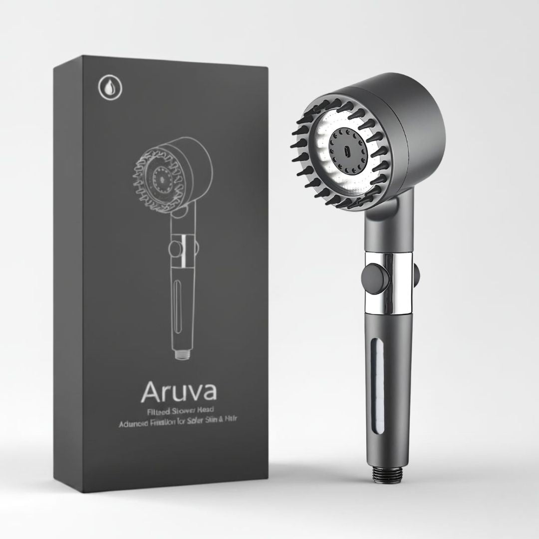 Le pommeau de douche filtrant Aruva est le meilleur produit pour éliminer le chlore, le calcaire et les métaux lourds de votre eau afin de vous offrir une peau et des cheveux en bonne santé.