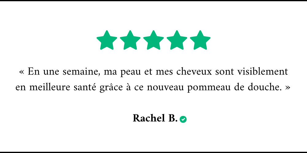 C’est probablement à cause de votre eau! Du chlore est ajouté à notre eau pour la désinfecter et tuer les bactéries, mais ce chlore n’est pas bon pour notre peau et nos cheveux. De plus, nos canalisations ajoutent des métaux lourds à notre eau.