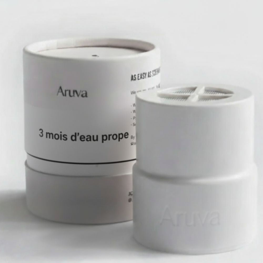 Les filtres Aruva, intégrés à la pomme de douche, se changent tous les 3 mois.