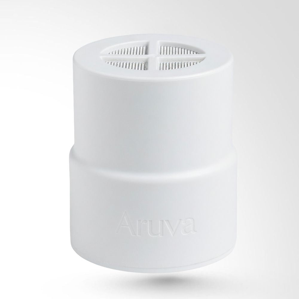 Le filtre de rechange Aruva s’insère dans le col de votre pomme de douche filtrante Aruva et doit être remplacé tous les 90 jours.