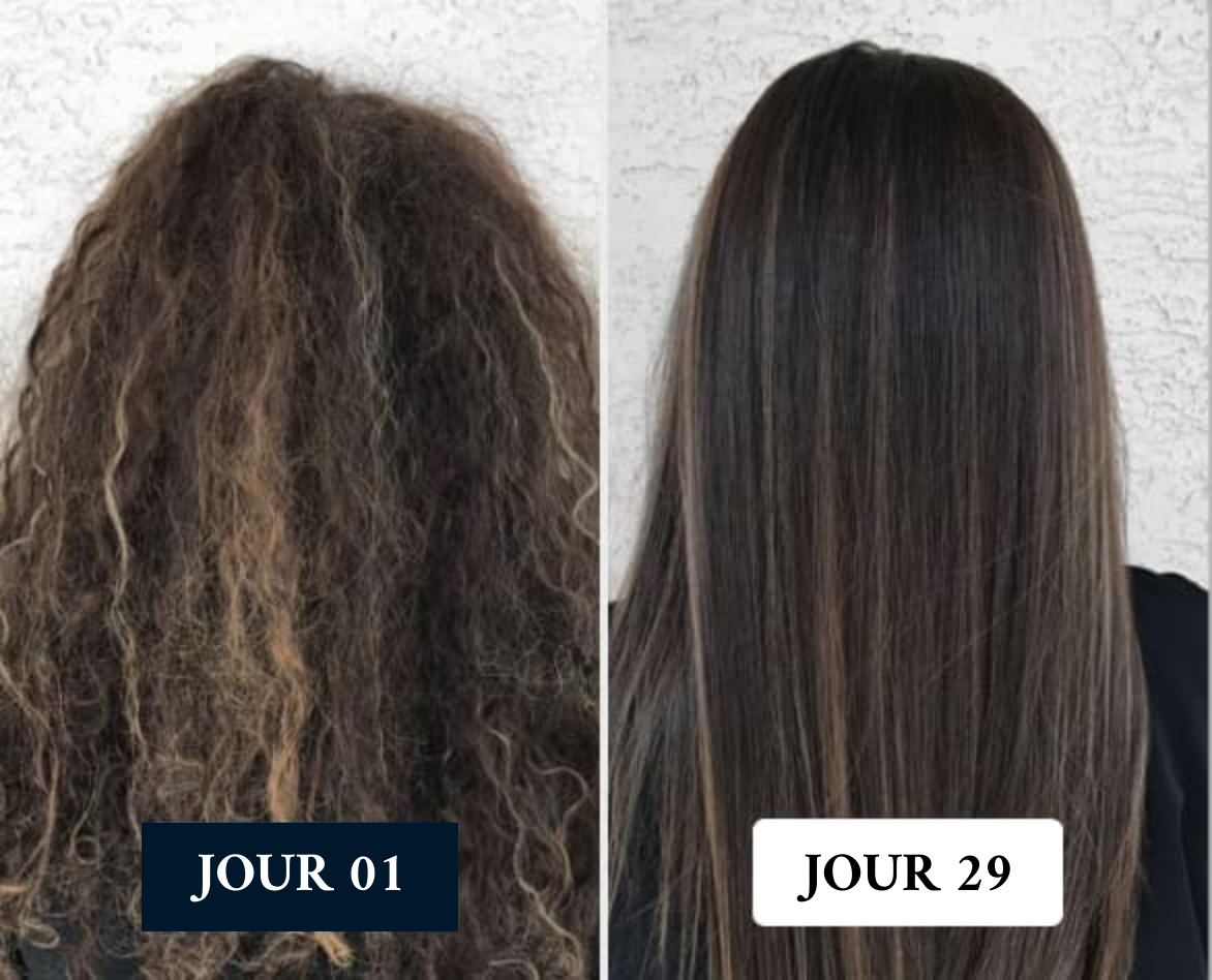 Mes cheveux étaient tellement secs et fragiles, ils se cassaient constamment, surtout en hiver. Après seulement quelques douches avec ARUVA, mes cheveux se sentaient plus forts, plus sains et plus résistants. Au jour 29, c'est comme si j'avais une toute nouvelle chevelure !