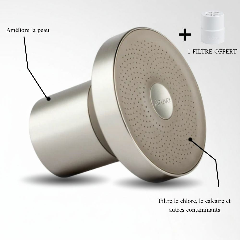 Saviez-vous que 85 % des foyers en France ont de l'eau dure ? Cette eau est chargée d'impuretés comme le chlore, la rouille , le calcaire et les métaux lourds, qui endommagent votre peau et vos cheveux.